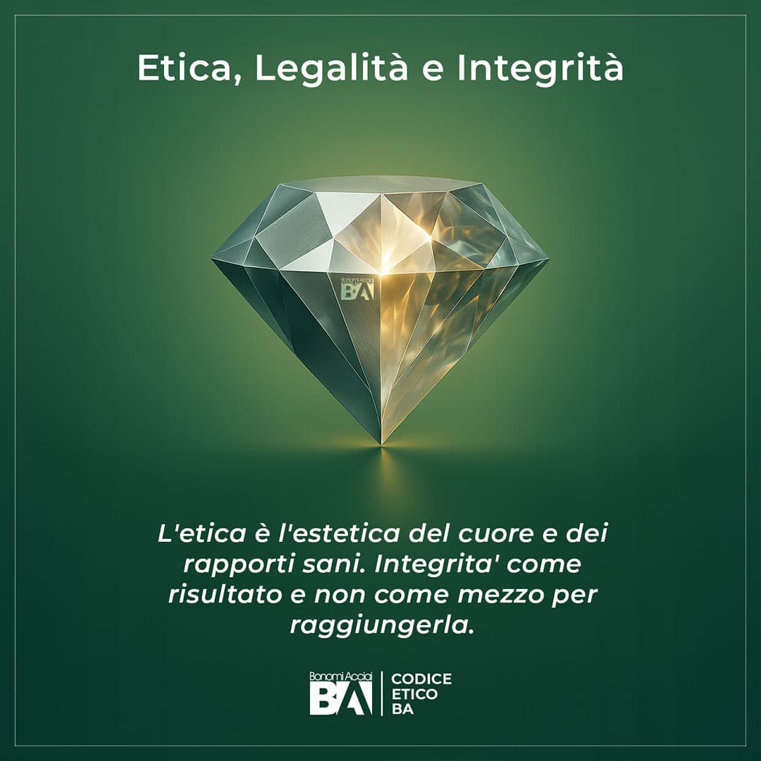 In Bonomi Acciai, i valori sono il pilastro che guida ogni nostra decisione. La nostra dedizione nel fornire acciai di eccellenza è parallelamente impegnata nel rispettare una solida etica e una visione orientata al futuro e all’innovazione.